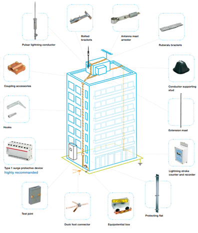 This beneficial triggering makes OPR air terminals especially effective for the protection of industrial sites, administrative or public buildings, monuments and open-air sites such as sports grounds.