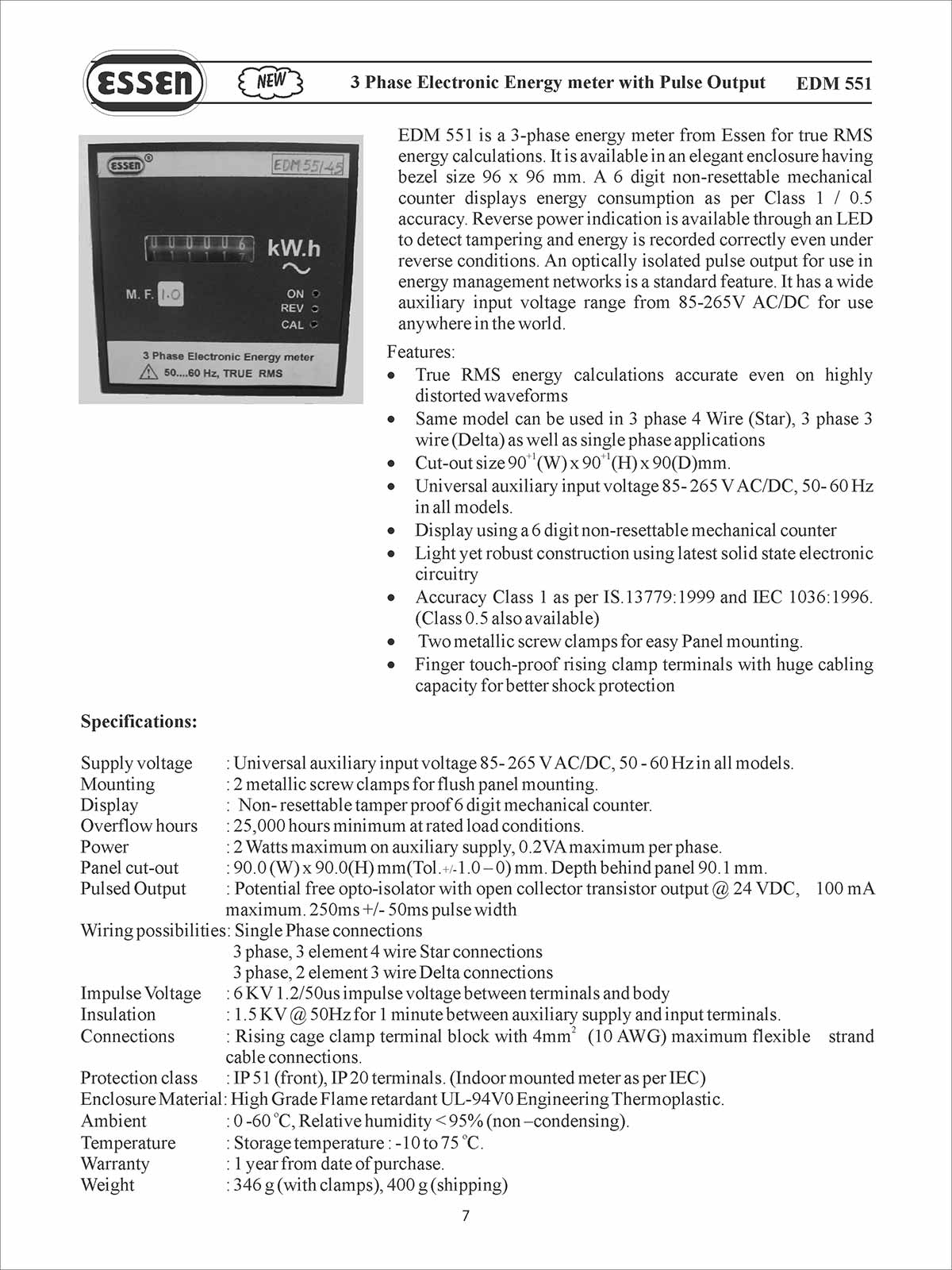 EDM 551-Series (96 X 96mm) (3Φ Electronic Energy Meters )