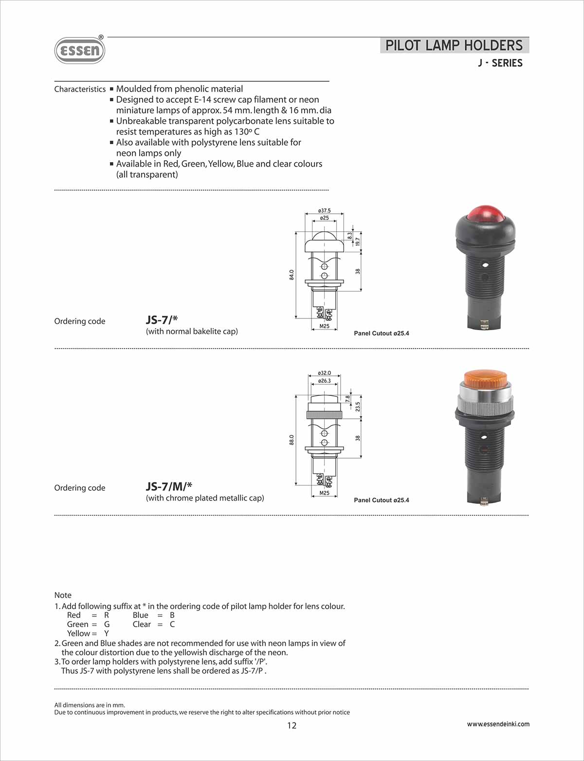 J-Series (Pilot Lamp Holders)