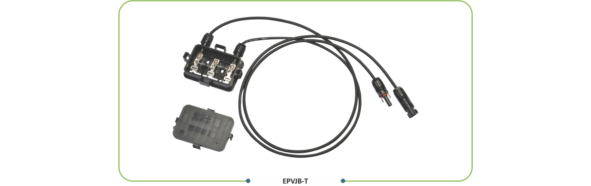 elmex PV Solar 3 - Rail Junction Box EPVJB-T is suitable for electrical connection from PV Crystalline module as a solution for easy and reliable interconnection from PV module to DC/AC converters. It has simple and cost effective assembly designed with snap fit locking arrangement with IP 65 protection requirement for PV industry. The Junction Box is provided with two cables each of 1 meter length, with elmex make straight male and female EMPV4 / EMPV4N connectors for simple on-site wiring.